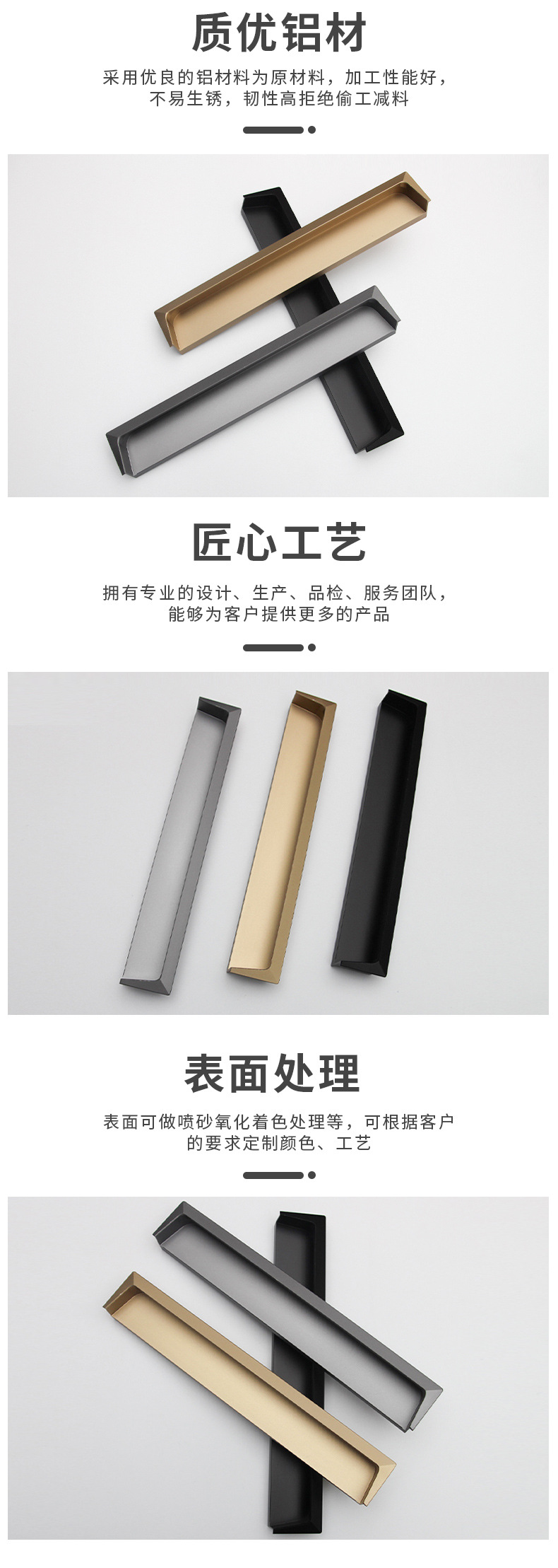Embedded grooved aluminum alloy door panel handle, aluminum slot hidden invisibl