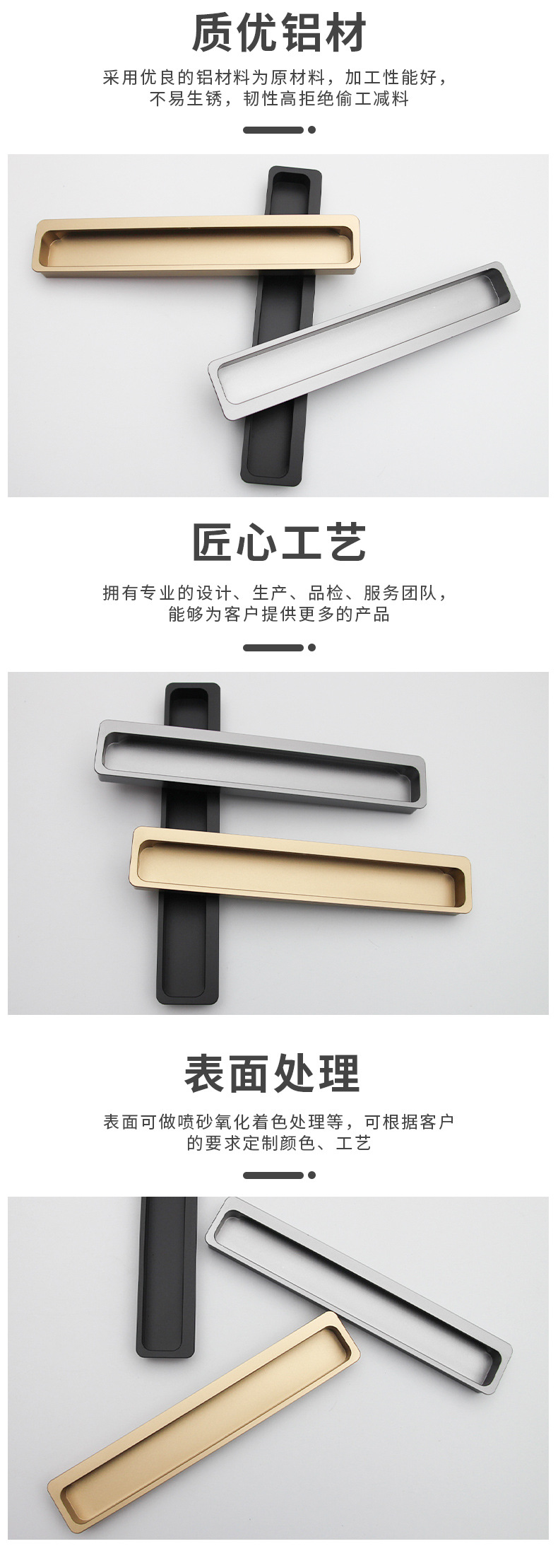 Invisible Concealed Handles for Sliding Doors, Aluminum Frame Grooved Recessed A