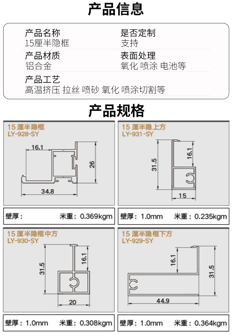 Light luxury sprayed semi-concealed glass door frame aluminum profiles, integral