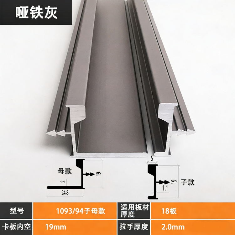 新款 18 板子母拉手采用高品质铝合金为核心基材,经公司专业深加工工艺与表面处理技术打造,表面兼具抗刮、防指纹特性,在厨房、浴室等潮湿环境中也能做到不生锈、不变形,耐用性远超普通五金拉手。作为一款隐形暗藏拉手,其内嵌式设计让拉手与门板浑然一体,摒弃传统明装拉手的凸起问题,有效避免家居生活中的磕碰隐患,让橱柜、衣柜外观更贴合现代极简、轻奢等主流装修风格,为家居空间营造简洁流畅的视觉效果。